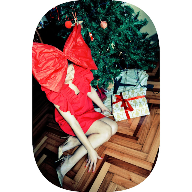 Cuando vi este vestido de SuiteBlanco, perteneciente a su colección llamada Spanish Collection, (llena de volantes, topos, rosas... tan típicas nuestras) me vino la idea a la cabeza. El cuello fruncido del vestido, el color... ¿No me digáis que no recuerda a un regalo?. Es por ello que me decidí a hacer unas fotos distintas, más tendentes a un editorial o a una postal navideña que a un simple blog de moda.